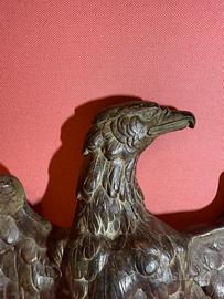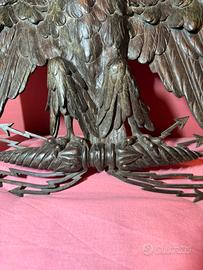 Bellissima e rara aquila napoleonica Primo Impero realizzata in bronzo pieno, recuperata in Francia da un noto antiquario intorno agli anni 50 negli scantinati di una sede storica della Gendarmerie di Parigi.