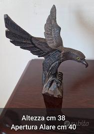 Vendo due sculture in legno massello raffiguranti aquile ad ali spiegate, scolpite interamente a mano. Stesso stile e lavorazione dettagliata su piume, artigli e becco. Occhi in vetro colorato giallo. Legno scuro con venature naturali, finitura lucida. Ottimo stato per entrambe. - *Pezzo 1 - Grande*: Altezza 45 cm, apertura alare 47 cm - *Pezzo 2 - Media*: Altezza 38 cm, apertura alare 40 cm - *Stile*: Oggetti d’arredo per salone, studio, ingresso o ufficio. Stile classico vintage anni '70-'80. Ritiro a mano preferito. *Prezzo indicativo*: - *Entrambe*: 220€ - *Aquila grande 45 cm*: 130€ - *Aquila media 38 cm*: 100€ Vendo anche separate. Prezzo per la coppia leggermente scontato.