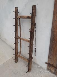 Vecchio Aratro attrezzatura per arare i campi a trazione animale serviva per sistemare i campi prima della semina, realizzato in legno di castagno e arpioni in ferro