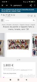 ARAZZO anni 30. La cosiddetta coperta per bambini egiziana. Lana tessuta su ordito di lino. Multicolori, colori vegetali. Frange su entrambi i lati corti. Motivi di animalie persone in un paesaggio stilizzato. Ottime condizioni di conservazione.