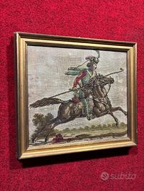 Arazzo Cavaliere Errante, non firmato, autore anonimo, in cornice dorata e vetro di protezione misura dell arazzo 40x44cm, misure totali 49x54cm, presenta vetro di protezione per preservarlo dal tempo, spedizione professionale con cartone ondulato polistirolo, ben imballato altre info e altre foto tel e w. 3314808197
