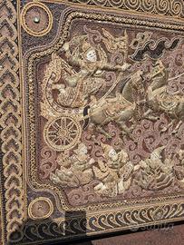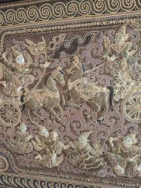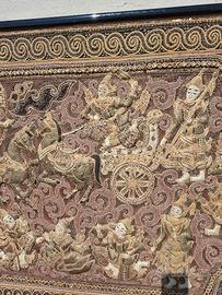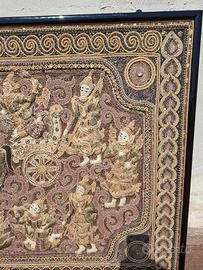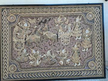 Splendido ARAZZO Vintage ricamato a mano Indiano fine 800 misura 95cm x 132 cm compreso di cornice.