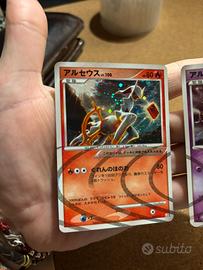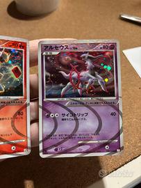 Vendo coppia di Arceus in prima edizione, rari Holo in versione Giapponese del Set Lightning & Psychic. Le carta presentano pochi e lievi segni, condizioni di entrambi EXC, excellent. Carte che verrano spedite in sleave e Toploader, pluriball e cartone rigido.