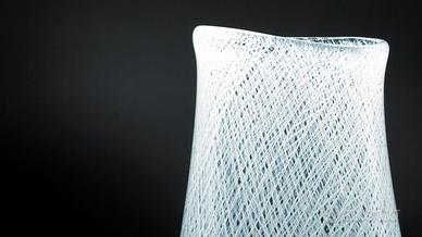 Vaso in vetro con decoro zanfirico a canne incrociate.