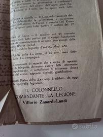 "Archivio Storico Carabiniere V. T. (1920-1934): Dal servizio a Fiume e Trieste ai Manuali di Polizia Giudiziaria (Verna Autografato). Include Ordine del Giorno Originale 1920." Eccezionale insieme di documenti e manuali originali appartenuti al Carabiniere XX XX, che permettono di ricostruire interamente la carriera di un militare dell'Arma tra le due guerre. Il "Cuore" del Lotto: Documenti d'Identità Storica Supplemento all'Ordine del Giorno (22 Ottobre 1920): Rarissimo documento ufficiale della Legione Allievi Carabinieri Reali di Napoli, firmato dal Colonnello Vittorio Zanardi-Landi. Il foglio riporta ufficialmente la promozione di XX XX a Carabiniere a piedi. Libretto di Servizio Originale: Documento manoscritto che certifica i movimenti del militare. Di enorme interesse storico i timbri e le annotazioni relative al servizio presso la Legione di Trieste e il Battaglione Fiume nel 1924, anno dell'annessione della città all'Italia. Manuali Tecnici e Professionali: Il lotto include 4 volumi fondamentali per la formazione dei Carabinieri dell'epoca: "La Polizia Giudiziaria" di Guglielmo Verna: Edizione di pregio con copertina rigida verde, Firmato, con prefazione del "principe" dei giuristi Vincenzo Manzini. Stato: Ottimo "Manuale Teorico-Pratico" di Guglielmo Milia: Prima edizione, essenziale per lo studio del codice di procedura penale. Stato: da rilegare nuovamente "Manuale di Polizia Giudiziaria" di Ulrico Fanelli: Testo specialistico del 1931. Stato: Buono "Legge e Regolamento sulla Pubblica Sicurezza" (1926): Volume che documenta le normative vigenti nel periodo di servizio di Tatarella. Stato: da risistemare. Presenta alcune macchie Non si tratta di oggetti slegati, ma di un archivio coerente. La coincidenza del nome tra il foglio di promozione del 1920 e il libretto di servizio garantisce l'autenticità e l'unicità del lotto. Un pezzo immancabile per collezionisti di Militaria, storia dell'Arma o appassionati del periodo fiumano.