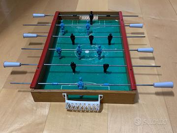 Calcetto balilla da tavolo con struttura in legno completamente originale