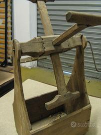 arcolaio in legno con vasca di raccolta h 70 cm largh. 35 cm, in legno di pioppo con incastri e decori sulle braccia, tutto originale, è visionabile a piacenza escluso trasporto