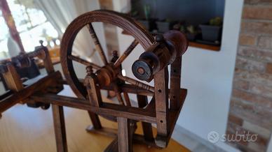 Strumento utilizzato per filare la lana o disfare matasse di filo riducendole in gomitoli, è dotato di una ruota azionata mediante un pedale collegato alla base.