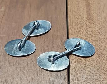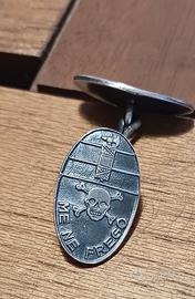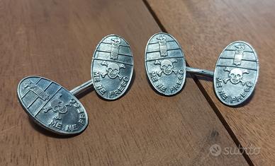 Coppia di gemelli in metallo con motto squadrista teschio e fascio littorio ottimo stato di conservazione