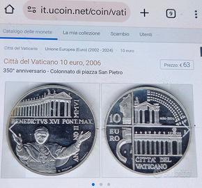 Moneta da 10 euro Proof in argento 925, fondo specchio Vaticano 2006.