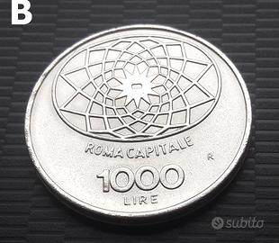 B) 1 sola moneta da 1000 lire Roma Capitale / Concordia, sfusa, in ottima conservazione come da foto