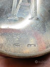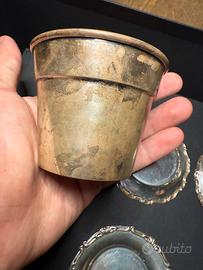 4 piattini e un vasetto tutto in argento 800 tutti gli artcoli hanno punzonatura. Peso totale 80g