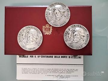 3 medaglie in argento massiccio titolo 800, coniate da Johnson Milano nel 1971 per conto della Repubblica di San Marino, in occasione del IV° centenario della morte di Benvenuto Cellini.