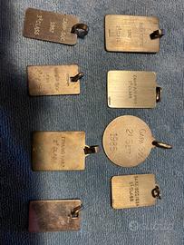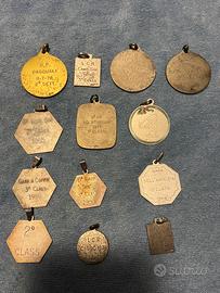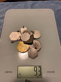 Lotto composto da: - catena, portamoneta argento 800 e moneta 500 lire caravelle 1961 totale 36 grammi. (La catena non ha il punzone causa rottura gancio). - medaglie argento 800 tutte punzonate totale 93 grammi. - medaglie argento 925 tutte punzonate totale 45 grammi. Totale argento 800 129 grammi al prezzo odierno di 1,76 cioe EURO 227,04 Totale argento 925 45 grammi al prezzo odierno di 2,036 cioe EURO 91,62 Prezzo totale EURO 318,66 - richiesto EURO 300,00