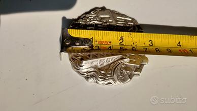 grande medaglione in argento titolo 925 lavorato artigianalmente dall'artigiano Cattaneo di Bergamo nel 1986 in commemorazione dell'anniversario della istituzione dell'Unione industriali di Bergamo e stato prodotto in 100 esemplari in argento e mille esemplari in bronzo e Donato agli imprenditori più rappresentativi della provincia quello in argento e praticamente introvabile. pesa ben 215 grammi ha una dimensione di circa 7,5 x 7,5 cm ed è perfetto conservato come nuovo nella sua custodia originale in tessuto morbido. prezzo e molto contenuto considerando che il solo valore dell'argento si avvicina a quanto richiesto