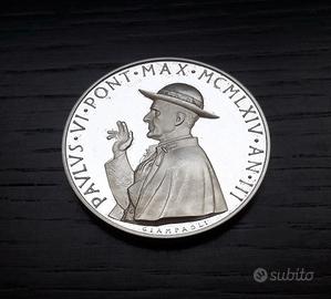 Medaglia annuale coniata, emessa il 29-06-1965, a ricordo di seguenti viaggi dell'anno 1964: Pellegrinaggio in Terra Santa dal 4 al 6 gennaio _ Pellegrinaggio Eucaristico ad Orvieto nel settecentesimo anniversario della bolla "Transiturus" il 11 agosto _ Montecassino con la Consacrazione della Chiesa dell'Archicenobio il 24 ottobre