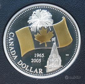 - 1 dollaro 40 anniversario della Bandiera Canadese, peso 25,18 grammi di ARGENTO 999 puro, con parti placcate oro