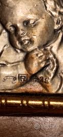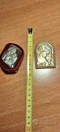 Deliziosa coppia di immagini sacre in argento, perfette per un regalo speciale o per arricchire la propria collezione. - Raffigurano scene sacre con dettagli finemente lavorati. - Una delle immagini è incastonata in una cornice dorata. - L'altra immagine è montata su una base in legno scuro.