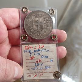 Argento Moneta Periziata 5 L Scudo Regno d'Italia