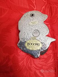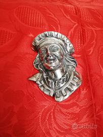 Scultura laminata in argento, raffigurante Arlecchino, venduta dal negozio Boggiali, argentiere in Milano. Si presenta in ottime condizioni e non ci sono né rotture e né sbeccature. È dotata di foro, utilizzato per la sua sistemazione su di una parete. Spese a carico del destinatario.