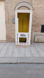 vendo armadio in lameria 3mm utilizzato come protezione di distributori di sigarette,utile come armadio di sicurezza contro furti per custodire attrezzi vari di un certo valore all interno di garage, capannoni...Per le dimensioni e peso ritiro a carico dell acquirente misure L84 P73H184
