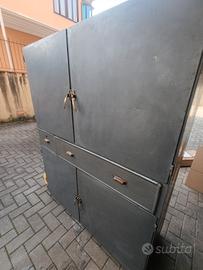 Vecchio armadio in ferro proveniente da filatura pratese . Da notare le stupende maniglie in ottone. Misura alto 185 largo 145 profondità 55 cm