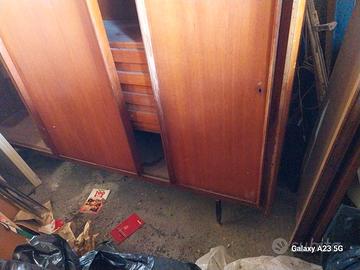 armadio con ante scorrevoli vintage con cassettiera centrale