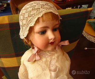 Bambola antica tedesca in porcellana con corpo originale - 71 cm.