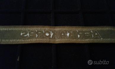 Stupendo e molto molto raro da reperire sul mercato, materiale di base della storia dell'epoca in base al conflitto di guerra (Seconda Guerra Mondiale). È un originale" cinturino da braccio del periodo nazista (ovvero decorazione a fascia o manica uniforme) per il cosiddetto personale militare DAK (Deutsches Afrika Korps), che partecipò alla "Campagna Africa 1941-43" a sostegno dell'alleato italiano durante la guerra. Lo stesso indicava allo stesso tempo anche l'appartenenza al Corpo AFRIKAKORPS, mentre gli altri soldati tedeschi che vi partecipavano, vantava solo l'Armelbander con il nome della "campagna di guerra": "AFRIKA". Esemplare non lavato e non macchiato, appare in condizioni " ECCELLENTE "di conservazione con il bellissimo ricamo in filo d'argento, perfetto, senza la" minima "tarmatura, ricucitura, foratura. Cimelio" affascinante "per collezionisti del materiale" TERZO REICH "e / o più specificamente del" DAK "Da aggiungere di più, per un pezzo di questo tipo, sarebbe "superfluo" e "sterile", poiché le immagini allegate commentano se stesse! Le sue misure sono: 380 mm x 30 mm. Venduto con dichiarazione di autenticità. Tutto "rigorosamente" originale d'epoca al 100% e garantito. Spedizione: Raccomandata (7 euro); Metodi di Pagamento: Bonifico Bancario. Vaglia Postale, Paypal, altri sistemi postali. Diritto di Recesso entro 10 giorni.