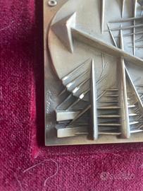 Piastra in bronzo argentato in ottime condizioni (lievi segni determinati dalla vetusta’) realizzata e firmata dall’artista per il Comune di Milano nel 1986.