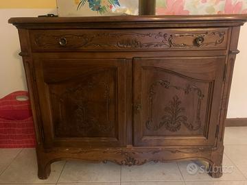 Arredamento antico e vintage Tavolo allungabile Sedie imbottite Credenza Sedia Comó Armadio basso con ante e cassetto Buone e ottime condizioni Come in foto