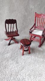 2 sedie 1 sgabello ottime condizioni sgabello altezza 3,5 cm diam.seduta 3cm sedia dondolo alt. 9cm largh. 4,5cm seduta 4 cm sedia alt. 7,5cm largh. 4cm profondità 3cm