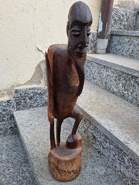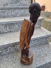 antica statua in legno scolpita a mano.altezza cm.60x15 di base