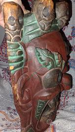 Antica Maschera Funeraria in Legno. Dipinta. Originale Arte Cinese Tibetana Cava all'interno Misure: H39 x L30 x P15. Anche Ritiro in zona