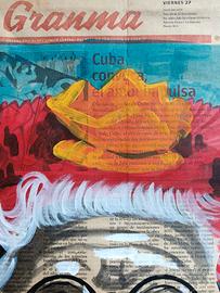 Un affascinante opera d’arte contemporanea di artista cubano, acquistata a Cuba, tecnica mista su carta di giornale applicato su tela, raffigurante anziana donna con sigaro, mood perfetto per raffigurare l’immaginario della grande isola caraibica. Un dipinto di grande interesse, molto ben conservato. Misure: 34 x 54 cm