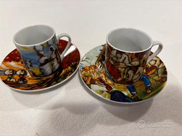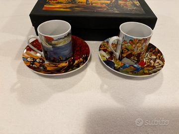Arte de cafe due tazzine con piattino e scatola