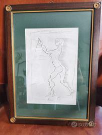 Disegno attribuito a Leonor Fini – pennarello su carta Cornice imperial fine 800 con vetro anti UVA Dimensioni 20x30 con cornice 35x45 Propongo un elegante disegno a pennarello su carta, attribuito a Leonor Fini. Il tratto, la tematica e lo stile rimandano chiaramente all’immaginario dell’artista: figure femminili, atmosfera onirica e segno deciso. Tecnica: pennarello su carta Condizioni: ottime Provenienza: collezione privata È possibile richiedere ulteriori foto ad alta risoluzione. Email gianmariacogliati@yahoo.it 1500 euro