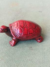 O4- elefantino e tartaruga - statuette cinesi portafortuna in resina rosso bordeaux - Resina/Poliestere - Cina – periodo Repubblica Popolare Cinese . elefantino 5hx4 cm , tartaruga 3,5Hx6.