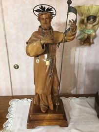 Bellissima statua in legno di noce altezza totale cm. 63 .