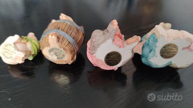 Ottime condizioni, presentano sia la firma che adesivi originale della ditta. In resina di polvere di marmo, scolpite e decorate a mano da D. Esposito. Made in Italy. Regalo l'ultimo elefantino baby con un orecchio rotto. Tutte 4 figurine per 60 euro.