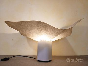 Iconica lampada da tavolo disegnata da Mario Bellini per Artemide negli anni 70, caratterizzata da un diffusore in carta rinforzata con fibre di vetro che una volta montato sul supporto prende la forma e la leggerezza di una nuvola. Questa serie di lampade vintage è esposta nella collezione permanente del MOMA di New York e ha ricevuto menzione al Compasso d'Oro nel 1979. La lampada è interamente originale, già revisionata e perfettamente funzionante. La vernice del corpo lampada è perfetta, il cavo originale è in condizioni ottimali, le plastiche sono integre e il tessuto ha piccoli normali segni del tempo. Il design di Mario Bellini si ritrova in molti prodotti iconici come il divano Camaleonda e le Bambole per C&B, la lampada da terra Chiara di Flos.