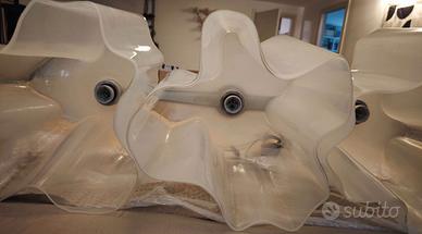Logico Sospensione 3 In Linea - Diffusore bianco Seta - 100 cm - h 31 cm Design Michele De Lucchi per Artemide Spettacolare lampada in vetro soffiato artigianale che definisce un volume morbido ed irregolare, mosso da curve. Uno dei tre diffusori ha due sbeccature di circa 1 cm per 1 mm di profondità, non particolarmente visibili. Per il resto ottime condizioni. Solo ritiro a mano su Milano.