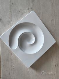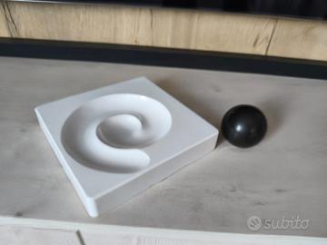 Base bianca con sfera nera. La sfera originale rotola lungo la spirale e spegne la sigaretta. Mancante di scatola. DESIGN: Eleonore Peduzzi Riva PRODUTTORE: Artemis Milano PRODUZIONE: Italia CONDIZIONI: Ottime condizioni MATERIALE E COLORE: Plastica bianca DIMENSIONI: 21 x 21 cm ALTEZZA: 3,6 cm