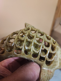 Oggetto di artigianato orientale. Un delfino scolpito in materiale tipo onice e al suo interno altro delfino più piccolo. Eventuale spedizione al costo di 9,50 euro con pacco ordinario delle Poste tracciato. Accetto tutti i tipi di pagamento tranne il contrassegno. NON ho PayPal P.S. Cortesemente a causa della mia attività che mi porta a stare fuori casa per brevi periodi, chiedete prima di acquistare poiché potrebbe capitare che non riesco a spedire quanto pagato entro le 48 ore previste. Grazie ?