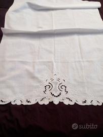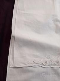 💬 Asciugamano in misto lino bianco, realizzato e rifinito completamente a mano. Si tratta di un pezzo unico, senza bordini applicati, lavorato con grande cura e precisione. La parte inferiore presenta un ricamo importante a intaglio, ricco di motivi floreali e traforature, realizzato con diverse ore di lavoro artigianale , in base alla complessità del disegno. L’altro lato è rifinito con un punto festone ondulato eseguito a mano, che dona eleganza e definisce perfettamente il bordo. 🆗️ Caratteristiche principali: ✅️ Materiale: misto lino bianco di qualità 🪈Misure: 150X 75 cm 🪡Ricamo: lavorazione a intaglio con trafori e dettagli floreali e punto festone 🪡Finiture: bordo superiore rifinito con punto festone ondulato 🧵🪡Lavorazione artigianale: numerose ore di ricamo manuale, eseguito con precisione. Pezzo raffinato, ideale per collezionisti, corredo o arredo di pregio. Made in italy 🎁 Idea regalo per Natale 🎅