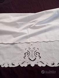 La parte inferiore presenta un ricamo importante a intaglio, ricco di motivi floreali e traforature, realizzato con diverse ore di lavoro artigianale , in base alla complessità del disegno.