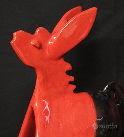Scultura decorativa raffigurante un asino stilizzato, realizzata dalla manifattura D’acunto , in ceramica artistica vietrese.