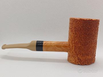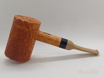 Pipa Aska artigianale poker, finitura rusticata, inserto corno di montone e bocchino in ebanite colore sabbia, olio e carnauba,