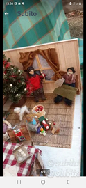 Meravigliosa creazione unica artistica " Aspettando il Natale " raffigurante la sera della Vigilia di Natale la notte più magica dell'anno dove tutta la famiglia e' riunita nella casa e si appresta nei preparativi della festa più bella dell'anno: la mamma che prepara i biscotti, il papa' che addobba l' albero di Natale, il nonno con la pipa che legge il giornale, il cagnolino incuriosito che osserva il bimbetto vicino al caminetto seduto sul tappeto che gioca , il fratellino nella culla che dorme, la nonna che sferruzza seduta tranquilla vicino al lavello e il gattino che vigila su tutti, mentre fuori dalla finestra la neve scende silenziosa..