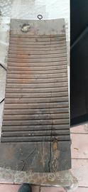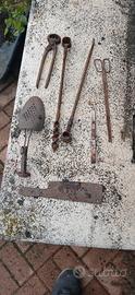 buongiorno dopo il successo e la vendita delle mie composizioni propongo quest'idea composta da un asse da massaia con cui si lavava al fosso oppure in un recipiente più se oggetti antichi : 2 trivellini da falegname diversi impiegati anche per piantare barbatelle d uva, tenaglia da carpentiere con manico cava chiodi pinza piglia oggetti ,forbice da vetrinario e allarga scarpe in cuio piu taglia cicoria per animali da cortile e chiodi e ganci vecchi.